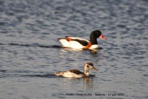 Tadorne et son petit (seul rescapé de la portée de 8) :