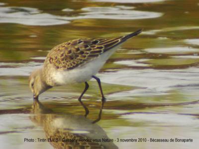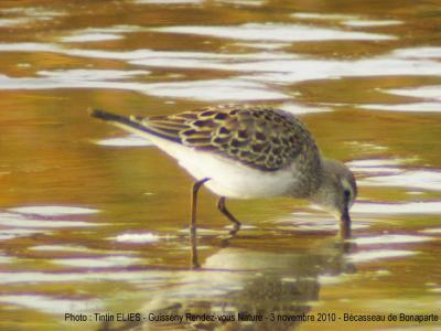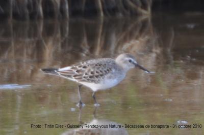 Le 31 octobre, il y avait beaucoup de monde au Curnic pour observer ce petit bécasseau. Il s'agit d'un bécasseau d'Amérique, présents en Europe de l'Ouest de façon "accidentelle". Le 3 novembre, il était encore présent.