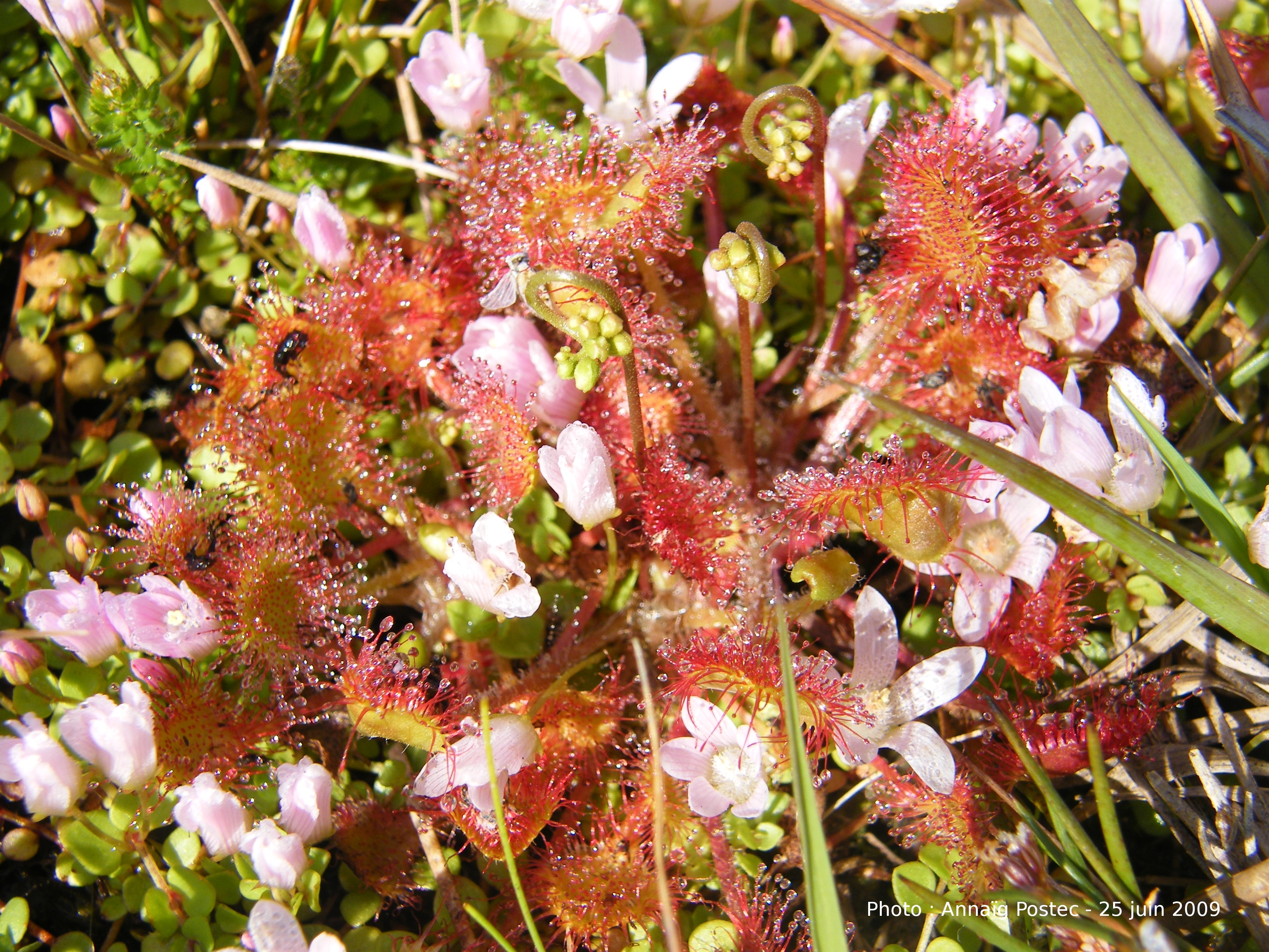 La Drosera à feuilles rondes (Drosera rotundifolia) est en fleur actuellement dans les tourbières d'An Isquin.