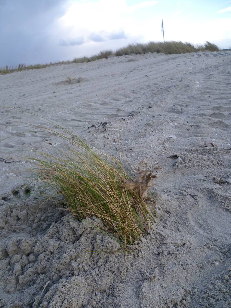 Le lendemain des travaux, la plage zone de prélèvement et la dune réensablée :