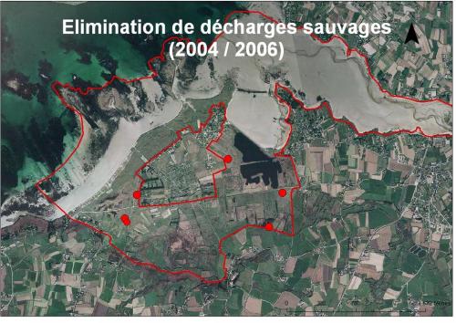 Depuis 2004, la mairie de Guissény travaille sur l'élimination des décharges sauvages dans le marais du Curnic. Ainsi, 5 sites ont été nettoyés dont un où la décharge était encore en activité.