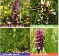 La rencontre des eaux acides, qui descendent du plateau du Léon, et des sables coquilliers, alcalins, crée une grande diversité d'orchidées entre la falaise morte et la digue. On observe ainsi en partant de la falaise : l'Orchis à feuilles tâchetées (Dactylorhiza maculata) sur sol acide, l'Orchis à fleurs lâches (Orchis laxiflora) sur sol basique ou légèrement acide, l'Orchis négligée (Dactylorhiza praetermissa), l'Epipactis des marais (Epipactis palustris) sur sol basique.
